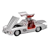 ミニチュア展示 1:64スケール 1955 300SL W198 ガルウィングドア ダイキャストコレクターモデル スタティックオーナメント シミュレーションコレクション(赤)