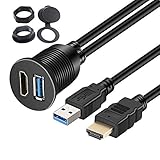 Timloon 車用 HDMI&USB3.0 延長パネル USB3.0入力ポート&HDMI入力ポート オーディオ中継 オーディオパーツ 防水ケーブル ダッシュボードキッ(2メートル)