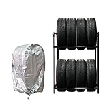 ZATOOTO タイヤカバー 軽自動車用 屋外 フェルトパッド4枚付き 幅65×高さ90cm タイヤ 4本 収納 保管カバー 420D 厚手 防水 紫外線 劣化 汚れ防止 耐久 収納袋付き シルバー (14/15/16インチ) LTZ04-SS