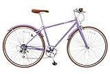 【組立動画付き】スピードワールド SPEED WORLD クロスバイク 700C*28C(約27インチ) シマノ製6段変速機 初心者 シティバイク スポーツバイク オシャレ通勤通学用自転車 適用体重100kgまで 街乗り スタイリッシュデザイン 快適なサドル高さ調整 大人 女性 学生 (パープル(泥除け付き・茶色仕様))